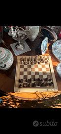 Tavolo in massello di noce italiano tutto intarsiato con base massiccia