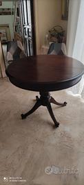 Tavolo noce rotondo 100 diametro più 2allungi da 40 per lunghezza 140 e 180 fattura napoletana del 900 uno dei piedi è stato riparato.