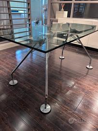 Tavolo Nomos di Norman Foster per Tecno con piano vetro da cm 160 x 80