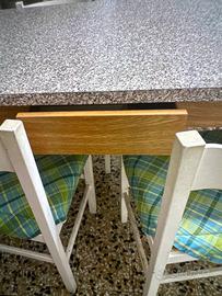 - tavolo non allungabile con cassetto per posate, in ottimo stato. Piano del tavolo effetto granito. Dimensioni: 150cm x 80cm x 80cm.