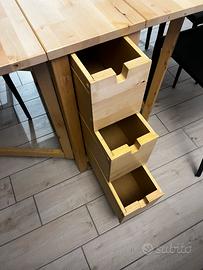 Tavolo Norden Ikea allungabile betulla come nuovo. Inoltre per renderlo piu comodo e fruibile in piu persone ho realizzato delle estenzioni che allingano il tavolo di circa 30 cm. Ritiro esclusivamente a mano a Bonate (BG) o limitreofi.