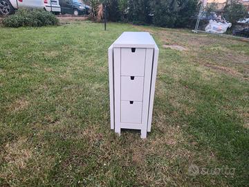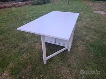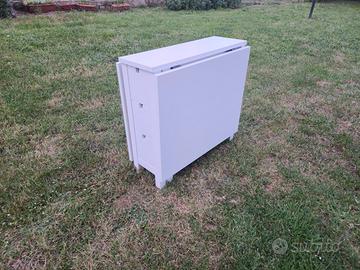 Vendo tavolo a ribalta modello NORDEN di IKEA in colore bianco, causa cambio arredamento. 6 cassetti centrali (3 per lato) ideali per posate, tovaglioli o piccoli oggetti. Dimensioni: Lunghezza minima 26 cm, media 89 cm, massima 152 cm. Larghezza 80 cm, Altezza 74 cm. Ottime condizioni. Solo ritiro a mano.