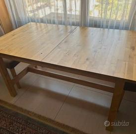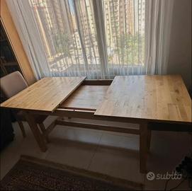 vendo per inutilizzo tavolo in legno massiccio allungabile, modello NORDEN di IKEA. ottime condizioni. Tavolo in betulla massiccia, materiale naturale e resistente. Meccanismo di allungamento fluido e con prolunghe che "scompaiono" all'interno della struttura. Dimensioni: lunghezza base di circa -155 cm, che arriva a circa 210-220 cm una volta allungato, con una larghezza di 90-95 cm. prezzo 150€ ritiro a mano