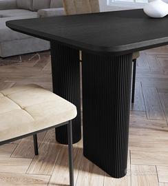 Tavolo 180x90 cm nero con top effetto legno e gambe cannettate