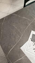 Il piano del tavolo è realizzato in nobilitato, finitura pietra grey.