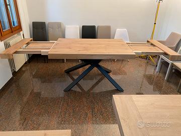 Tavolo nuovo in stile moderno con piano in tinta naturale e gambe in metallo antracite, misura da chiuso cm 180x100 allungabile a 280 cm (due prolunghe da 50 cm). Disponibile per visione di persona.