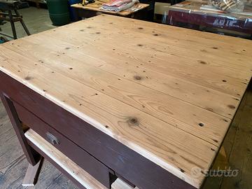 Tavolo in legno ottimo per arredare un negozio o per eseguire lavori, strutturalmente molto solido con grande cassetto e ripiano inferiore.
