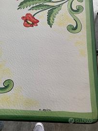 Vendo tavolo misura 120 x120 con 4 sedie e base in ferro battuto. Il tavolo è nuovo in pietra lavica spesso 4 cm. Realizzato e dipinto a mano a Messina dai maestri artigiani di Melita. Prezzo solo 800 euro. Tel 3348085766 x visione a Sacile