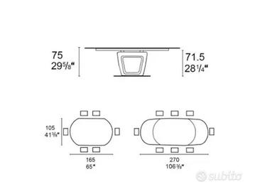 Tavolo Orbital Calligaris ALLUNGABILE CON MECCANISMO A ROTAZIONE struttura verniciata bianca e piani in ceramica bianca venata, allego anche un’immagine con le misure da chiuso e da aperto.