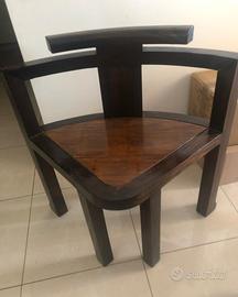 Tavolo tondo di esportazione cinese in bambù e legno massello colore wenge con 4 sedie salvaspazio, allungabile per 6 sedute comode. Ottime condizioni. Prezzo d'acquisto € 3000,00.