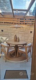 Pregiato legno di Mango , accentuata finitura anticato, artistico supporto centrale..Tavolo comprato e mai usato.