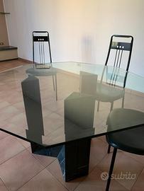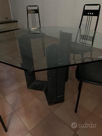 Vendesi tavolo ottagonale con basamento in marmo nero originale cattelan e superficie in cristallo, usato, completo di quattro sedie, come nuovo. Cristallo spessore cm. 1,5 , altezza 72 , larghezza cm. 126