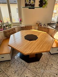 Tavolo ottagonale in legno con parte centrale in marmo. Larghezza: 154 cm