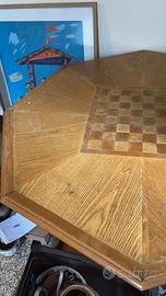 Bellissimo tavolo ottagonale con scacchiera integrata in legno di ciliegio, pezzo vintage molto raro,