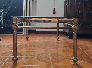 Tavolo per salotto in ottone e cristallo lunghezza 112cm e altezza 40cm