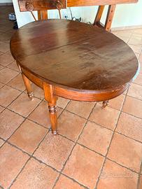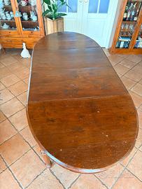 Splendido tavolo ovale allungabile di fine Ottocento, realizzato in legno massello d'abete, con struttura solida e sistema originale di allungamento su guide in legno. Il tavolo si presenta chiuso in formato ovale 125 x 95 cm, grazie alle due prolunghe, raggiunge una lunghezza totale di 214 cm. Ideale per ospitare comodamente 8 persone.