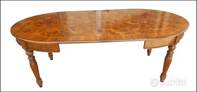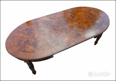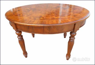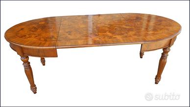 Questo tavolo ovale allungabile in radica di noce ferrarese è un'opera d'arte artigianale di alta qualità. La sua superficie in legno pregiato presenta un'affascinante venatura naturale che conferisce un tocco di eleganza e raffinatezza. Le gambe tornite e il design classico lo rendono un pezzo d'arredamento perfetto per ambienti tradizionali e di lusso. Con la sua funzione allungabile, questo tavolo può adattarsi facilmente alle tue esigenze di spazio, rendendolo ideale per accogliere ospiti e creare un'atmosfera accogliente. Realizzato con maestria e attenzione ai dettagli, questo tavolo è destinato a durare nel tempo e a diventare un'eredità da tramandare di generazione in generazione.