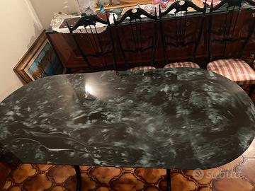 Bellissimo Tavolo ovale con pregiato ripiano in marmo veriegato buongiorno e nero anni 60, adatto anche allo stile moderno in ottime condizioni, prezzo trattabile ritiro a domicilio, mi trovo a Sinnai provincia di Cagliari