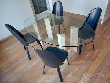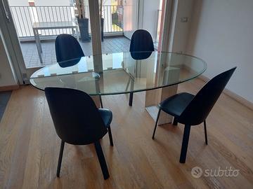 Tavolo subito disponibile, trasporto da valutare a carico del compratore (disponibile al piano terra). Ottimo stato, gambe perfette, vetro in ottime condizioni senza graffi, crepe o scheggiature, praticamente perfetto. Modello Diapason, marca Cattelan. Raro tavolo ovale di medie dimensioni. Ovale con asse maggiore 180 cm circa, asse minore 120 cm circa, altezza 72 cm circa. E' il tipo ovale, non quello ellittico (ellisse). Basi in marmo travertino. Vetro spessorato e materiale di alta qualità. Come da foto, manca un gommino tra il vetro e una delle gambe del tavolo. Design italiano.
