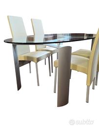 Bellissimo tavolo ovale cristallo Design modello cannaregio Con 4 Sedie pelle modello chiaronne della rinomata