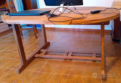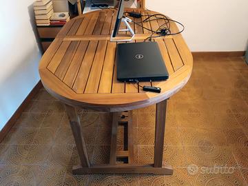 Vendo, tavolo ovale da giardino in legno massello duro e solido (non ricordo se acero o eucalipto), con un'ottima resistenza all'umidità. Tutta la struttura è molto robusta e offre un supporto particolarmente stabile. Il tavolo è in ottime condizioni in quanto usato poco tempo all'interno come piano di lavoro. Misure: 150x100 altezza 77 cm. È allungabile, credo sino a due metri e ma non ho avuto modo di verificarlo perché non ho idea né spezio per farlo. Nel mezzo del piano del tavolo quando viene allungato c'è un foro supporto per l'ombrellone presente anche nella base. Poiché la spedizione è impossibile per il peso e le dimensioni si può visionare, smontare e ritirare a Momperone (Al). Vi invito a visualizzare il mio account: Giusi Faccio Dopo la morte di mio marito sto vendendo casa e svendo libri e tantissimi altri oggetti, magari qualcuno vi può interessare. Non esitate a chiederne la disponibilità di altri che non vedete inseriti, se li ho li metto in vendita.