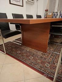 In aggiunta, disponibili 5 sedie in pelle nera con struttura in metallo cromato, comode e raffinate, perfette per ambienti direzionali o sale meeting.
