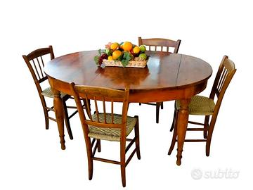 Tavolo ovale elegante in ciliegio massello, con cassetto e raffinato piede con tornitura affusolata.