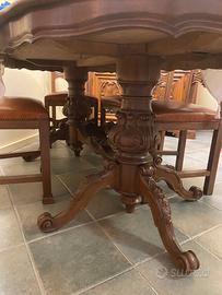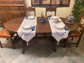 Proponiamo in vendita splendido tavolo fisso ovale in noce nazionale con bordatura lavorata e gamboni in stile barocco. Il tavolo è in vero legno di noce (no laminato, compensato, truciolato etc...).