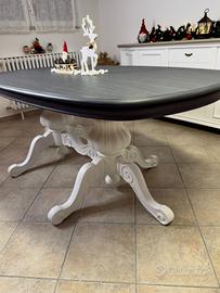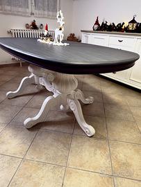 Tavolo ovale grigio bianco in legno artigianale