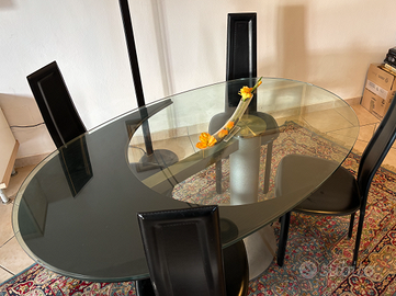 Tavolo ovale in cristallo allungabile + 4 sedie