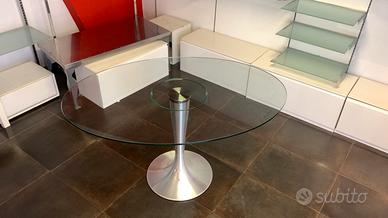Tavolo ovale In cristallo Con piede ACCIAIO ideale per casa e ufficio 139 x 95 il tavolo ovale