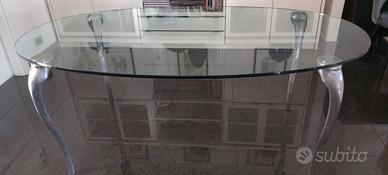 Tavolo da pranzo ovale da 8 persone con piano in cristallo. Gambe in acciaio satinato. Buone condizioni. Misure cm 180 x 100 - altezza da terra cm. 73 - spessore cristallo cm 1,5. Non spedisco, ritiro a Torino