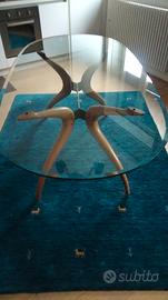 Vendo tavolo ovale in cristallo con "zampe" in legno, avente dimensioni pari a: 200×100 cm. in buono stato, e 4 sedie con schienale alto e 2 "vestite". Ritiro e trasporto a cura dell'acquirente.