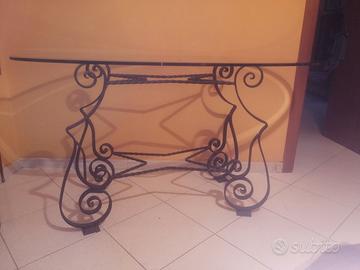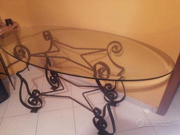 Tavolo in ferro battuto e cristallo molato spessore mm 15,misure 160x80, altezza 85