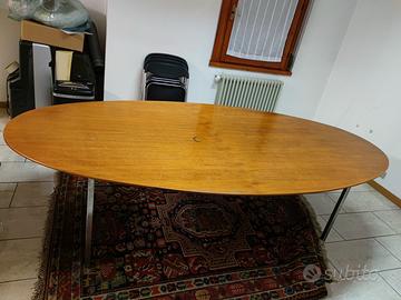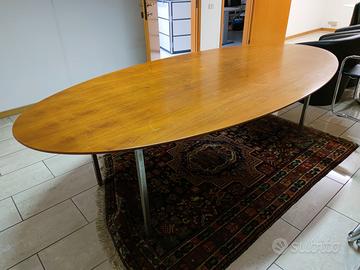 vendo tavolo da pranzo-riunioni in legno con gambe in acciaio. lunghezza cm 248×126×71. presenta segni, usato per anni come tavolo per riunioni in ufficio.