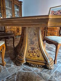 Tavolo ovale in radica intarsiato + 6 sedie vellut