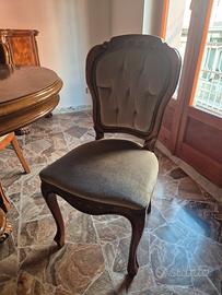 Vendo elegante tavolo da pranzo in stile classico, realizzato in legno con finitura in radica e raffinati intarsi floreali. Il tavolo ha forma ovale ed è solido e stabile, ideale per sala da pranzo o soggiorno importante. Incluso nel prezzo: - 6 sedie coordinate - seduta imbottita e rivestita in velluto chiaro - struttura in legno lavorato Condizioni buone, normali segni del tempo ma nessun difetto strutturale. Perfetto per chi cerca un arredamento classico e di pregio. 📍 Ritiro a mano 📩 Contattami per info o altre foto