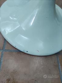 Tavolo in vetro con piantana centrale. Misure 140x90 ( nel punto più largo). È leggermente rovinato sulla parte bassa della piantana.