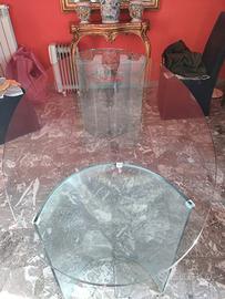 Bellissimo tavolo ovale 2.00 x 1.00 in vetro temperato. La base poggia su due piedi a cavalletto ed è spessa circa un centimetro (come da foto). Presenta alcuni graffi poco visibili. Necessita di un trasporto (a carico dell'acquirente) adeguato.