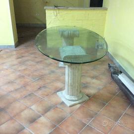 Tavolo ovale in vetro con piedi in marmo capitelli,dimensioni mt 2.00 X1,10. Spessore vetro mm 12, Base marmo. Cm 35 x35. Altezza cm 75, prezzo euro 700. Tel. 091 2523871/ 3391058345