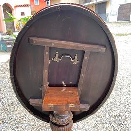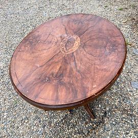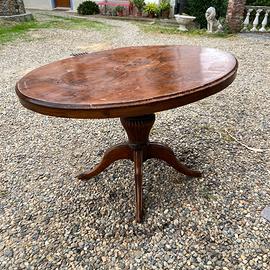 Tavolo a Vela noto anche come tavolino o Tilt-Top Table in inglese è un mobile funzionale e di design storico, la cui caratteristica principale è il piano che può essere ribaltato in verticale ("a vela") per ottimizzare lo spazio. Provenienza: milano in legno di Mogano, Noce, con lastronatura e Eventuali altri materiali ,caratterizzato da Colonna centrale tornita, piano intarsiato base a quadrupiede con piedini mossi. Questo tavolo è un pezzo originale d'epoca e presenta il fascino autentico dei mobili antichi. buono stato generale, necessita di eventuale restauro La patina è originale con normali segni del tempo e dell'uso, presenta alcuni graffi superficiali sul piano e usura nelle gambe Le foto sono parte integrante della descrizione. Si consiglia un'attenta visione per valutare in dettaglio le condizioni. Dimensioni :100 x 132 h 78 Disponibile il ritiro gratuito presso [cossato BI]. Non esitare a contattarmi per qualsiasi domanda o per richiedere ulteriori foto/dettagli tramite wzap.