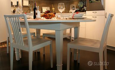 TAVOLO + 4 SEDIE di SNAIDERO mod. FLORENCE dimensioni tavolo: 110x165 cm ovale Legno rovere bianco laccato opaco poro aperto Nuovo. Visionabile senza nessun impegno.