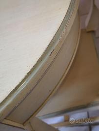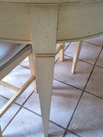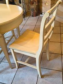 Tavolo ovalino in legno massello misura da chiuso 110 x 80 con 2 prolunghe da 51 x 110 e all' occorrenza altre 2 zampe che scendono da sotto il tavolo +4 sedie in legno massello decapate