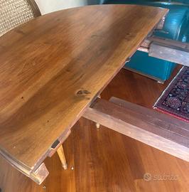 Allungabile con due prolunghe comprese larghe 50 cm. per un totale di 210 cm. Gambe con rotelle originali.