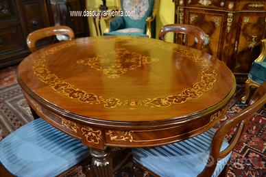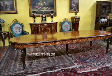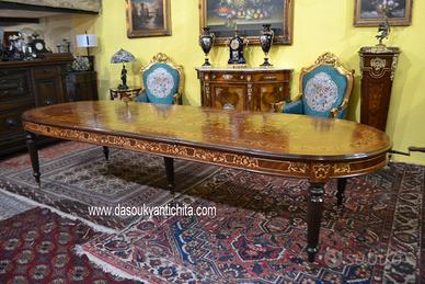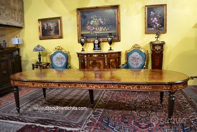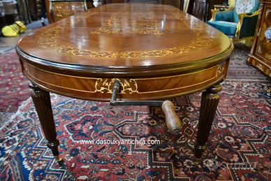 Aperto : Larghezza 118 cm. Profondità con 4 allunghe 353 cm. Altezza 80 cm.Chi fosse interessato a una visita virtuale della nostra galleria può accedere ai motori di ricerca, inserendo il nominativo " Dasouky antichita' " Per informazioni contattateci ai seguenti numeri Cell. – Cell.