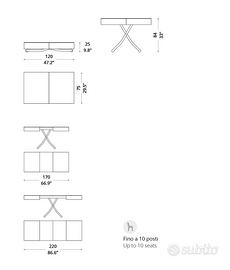 Vendo tavolo Ozzio modello Box, in vetro bianco opaco con base cromata, perfetto per chi cerca design moderno e funzionalità. Il tavolo è regolabile in altezza da 25 a 84 cm e le allunghe interne sono in nobilitato in tinta. Da chiuso misura 120x75x25 cm, da aperto arriva fino a 220 cm di lunghezza per ospitare più persone. Ruote a scomparsa e sistema estensibile pratico.Da segnalare: un angolo presenta una piccola crepa nel vetro (visibile in foto), che non ne compromette l’utilizzo.Prezzo di vendita: