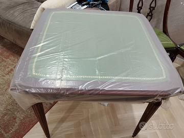 disponibile tavolo in legno massello da gioco in pelle bulgara con quattro sedie età suoi 40 anni in buono stato il prezzo è di 500 EURo no chiamare dopo le ore 20