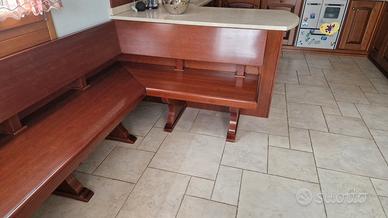 Vendo tavolo + panca + 3 sedie in ottime condizioni, finitura ciliegio, la panca è molto bella e ha una seduta comoda. Dimensioni tavolo 85 x 150 cm., dimensioni panca 140 x 205 cm.
