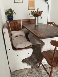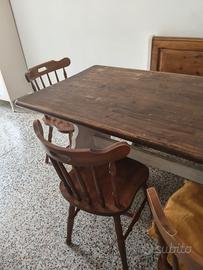 Vendo Tavolo panchina e 3 sedie in legno Tavolo con tracce di usura come da foto Dimensioni tavolo 145x77 Non vendo separatamente 200€ il tutto Non consegne Disponibile per ritiro dal 25 febbraio Zona Furio Camillo