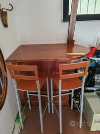Tavolo penisola con armadietto molto capiente e 2 sedie alte abbinate. Tutto come nuovo. Misure: il piano sopra 120x80, le 3 mensole all'interno 90x30, altezza 105. Vendesi per cambio cucina. Prezzo trattabile.